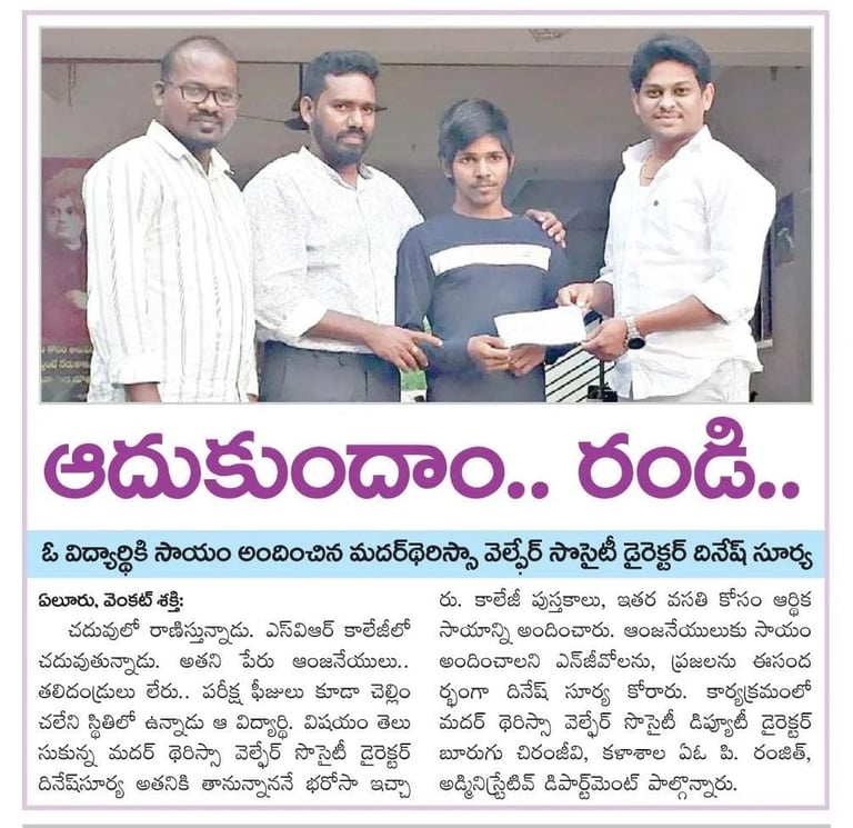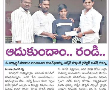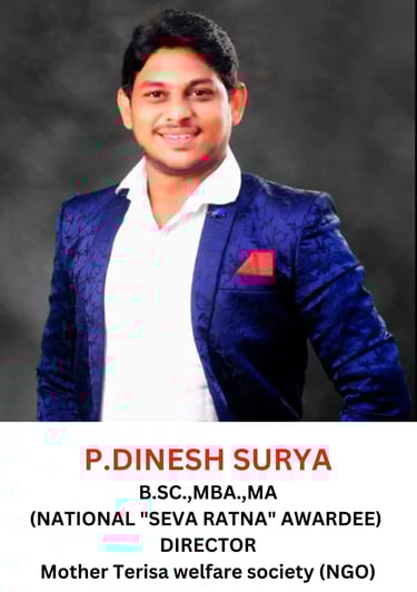 Thank you for all your blessings and some of them who criticize me too. Because today I need to say about myself. Thanks for them, too; my name is Dinesh Surya. I am from Eluru w.g dist, A.P. in India, and I completed my B.sc Geology at Aundra university & M.A. (Journalism & Mass Communications) Narjuna University & M.B.A…JNTUK (Research) and my mother was House Wife, and my father was Auto Driver. And I Have One Younger brother.., to day i am here because ….. from my childhood onwards I helped many for their food ,clothing, medicines too.